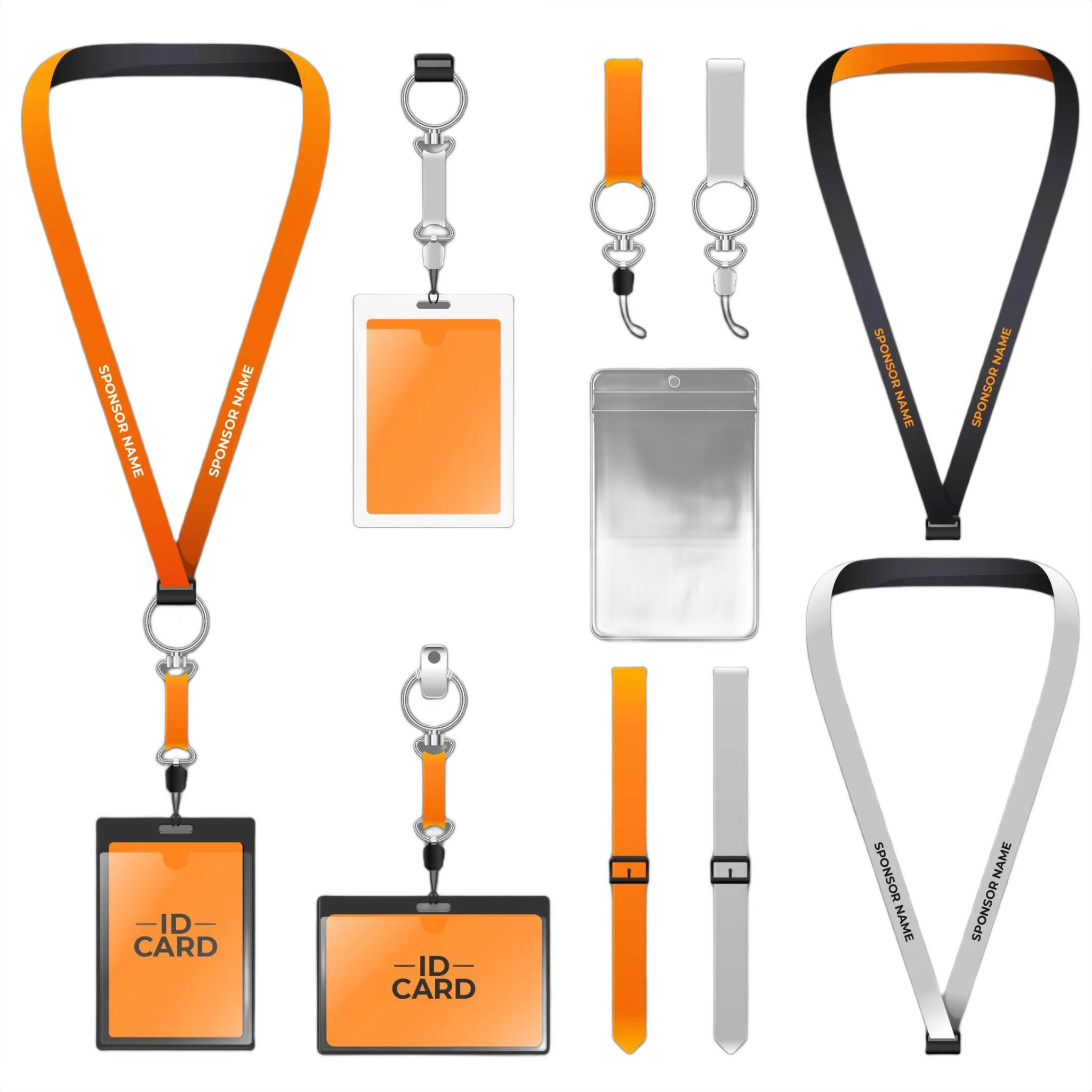 We use high-quality, durable PVC for ID cards and offer lanyards in materials like polyester, nylon, and tubular fabric, all customizable.